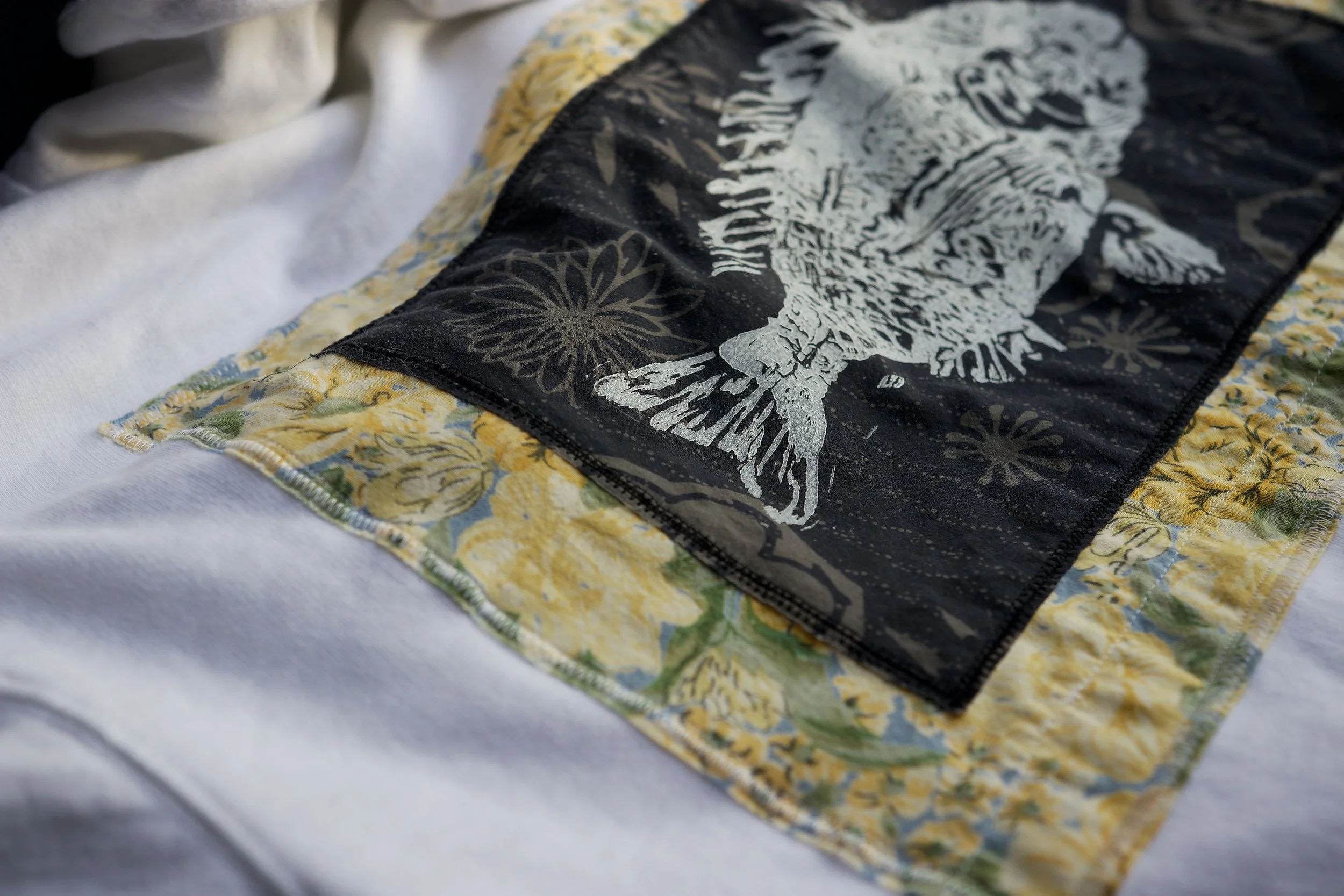 Each Scrappy is made entirely from second hand materials, from the garment itself, to every scrap textile used. My goal with Scrappy Dappy is to create unique, one of a kind pieces by hand painting, sewing, block printing, and any other medium that inspires the creative mind. Every piece is meticulously curated from start to finish by me, Cam.